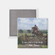 This magnet features an original digital artwork of a horse and rider jumping a farm gate by artist Jayne Wilson, with the quotation "To ride a horse is to ride the sky."