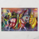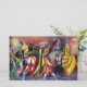 Elegant ,whimsical,artistic design with magic musical nocturne,moon,faeries,horses in vibrant blue green,red,yellow,white colors .Acrylic painting on canvas, mixed media painting by Bulgan Lumini (c)