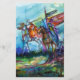 Medieval knights with horses ,colorful and expressive contemporary figurative painting in vibrant blue,red,green white,brown colors,watercolor by Alessandro Lumini 1989 Inspired from the legend of King Arthur and the Knights of the Round Table .This cool and artistic design is also a beautiful gift for Christmas and special occasions.