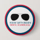 Show your presidential choice with this great button featuring Biden's preferred aviator style sunglasses in silhouette with red and blue modern text.