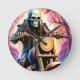 a skeleton gripped in pandemonium bike. Riding through the intertwining branches on the trail .He had a hopped-up .He has a black leather trousers and motorcycle boots And a black leather jacket with bone like design on the bilker outfit .With the sun going down behind him. Haze rising up from around him into the dark night he rids away with night stars above.