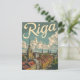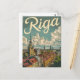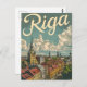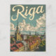 A nostalgic and picturesque depiction of Riga, the capital of Latvia, highlighting its rich history and architectural splendor. The design features the city's charming old town, cobblestone streets, and iconic landmarks, all illustrated in a vintage style. This artwork captures the essence of Riga's cultural heritage and timeless beauty, inviting viewers to explore its unique character.