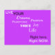 The "Right Here. Right Now." Design by Illustrator April McCallum Features Inspirational Words on a Vibrant Orchid Colored Postcard. Text Reads: "Live Your Dreams Purpose Passion Voice Joy Life Right Here Right Now"