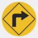 Right Turn, Traffic Warning Sign, USA Classic Round Sticker