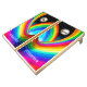 Natural Wood Cornhole Set, Yellow and Purple bags