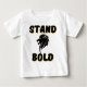 This baby t-shirt has a design that displays the words "Stand Bold" in a bold print font with black letter over a golden colored shadow with a black and gold lion head icon in the center in this faith based bible quote theme. This tees is comfortable, casual and standard size fitting, made from 4.5 oz 100% combed ring spun cotton, with double-needle stitched bottom and sleeve hems for extra durability with easy tear label.