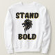 This men's sweatshirt has a design that displays the words "Stand Bold" in a bold print font with black letter over a golden colored shadow with a black and gold lion head icon in the center in this faith based bible quote theme. This sweatshirt is made from 100% cotton this shirt is both plush and durable which make a great combination has smaller matching image on the back.