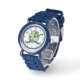 Riley boys single line name meaning heraldry knights shield kids wrist watch. Knights style shield monogram letter R art name simple numbered clock face perfect for in shades of green, blue white and grey. Personalize with your own name and name meaning for a great unique personalized gift, this example is for names with the letter R and currently reads Riley Resourceful dweller. Other matching items available. Unique shield drawing, graphic art, name research, wording, and design by for www.mylittleeden.com