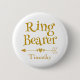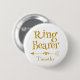 Introduce your ring bearer with this lovely "Ring Bearer" button. Featuring "ring bearer" in a gold design on a white background, this button is great for the wedding rehearsal, rehearsal dinner, and main event. Choose from a variety of button shapes and sizes.