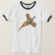 Original fine art design of a flying Ringneck Pheasant by designer Carolyn McFann of Two Purring Cats Studio on customizable t-shirts, sweatshirts, hoodies and more great clothing for wild bird fans.