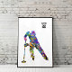Artistic watercolor-style depiction of a male ringette player captured in motion with a raised stick. The vivid blend of colors emphasizes strength and energy, creating a bold and dynamic composition ideal for a sports-themed poster.