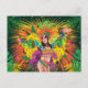 Rio Carnival bejeweled dancer with colorful background and leaves.