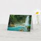 This photo features waterfalls at the Blue River and is the main attraction in forest turquoise waters.