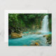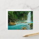 This photo features waterfalls at the Blue River and is the main attraction in forest turquoise waters.
