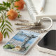 This keychain features a waterolor portrait of Christ Redeemer Statue overlooking Rio de Janeiro, Brazil.