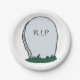A RIP gravestone above a grave in a cemetery. This design looks really effective on these Paper Plates