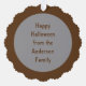 This awesome Halloween ornament card makes a lovely decoration that can be hung up like an ornament or sent in an envelope like a conventional card. The design features a creepy coffin made from wood with gold edging. The coffin lid is slightly open revealing only darkness within. The gold plaque on the front of the coffin has spooky black text on it that says RIP, giving no clue who or what might be lurking inside. This fun yet sinister coffin is ideal for Halloween. The bleak grey background acts to draw the eye of the observer towards the coffin of doom. There is custom text on the back so you can fully personalize this ornament card meaning it is also suitable for use as a present tag.