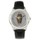 This awesome watch features a creepy coffin made from wood with gold edging. The coffin lid is slightly open revealing only darkness within. The gold plaque on the front of the coffin has spooky black text on it that says RIP, giving no clue who or what might be lurking inside. This fun yet sinister coffin is ideal for Halloween. The bleak grey background acts to draw the eye of the observer towards the coffin of doom.