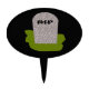 This awesome cake decoration features a grey tombstone with RIP in dripping black text on it, standing on a patch of green grass. Befitting of this morbid design the background is black.