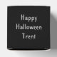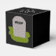 This awesome favor box features a grey tombstone with RIP in dripping black text on it, standing on a patch of green grass. Befitting of this morbid design the background is black. There is customizable text on the top lid so it can be personalized with text of your choice.