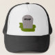 This cool hat features a grey tombstone with RIP in dripping black text on it, standing on a patch of green grass. The design is shown here on a black and white hat but other colour combinations are also available.