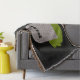 A quality printed throw has its advantages. This is a much finer weave throw than its loopier cousins, and though lighter, it is worth the investment for custom room accessorizing. The back is much prettier than the typical brown, and the fringe on the long sides very vivid, the selvage nicely done. Before photographing, I washed the throw in cold water, delicate, with a thicker woven throw the same size. On tumble dry low, this throw was dry in half the time as the other. This is a very practical quality if you use throws for furniture covers or to wrap up in frequently. The sleekness of the fabric makes it a great layer for accenting or protecting without the feeling of sitting on too much stuff. Perfect for napping or when you feel a light chill coming on. The color printing is beautiful and on this fabric, matched the design and color of my Photoshop image. This is an advantage for blending room fabrics and colors. The fringe on the short sides prints the colors from the design image and therefore varies from the side fringe. I streaked a white fractal line through the plaid pattern to give the illusion of weaving. This printed as crisp as an illusory thread, and put some white in the short side fringe, showing another advantage of print vs loomed- for artistic purposes, line lines, detail, and color integrity can be planned and preserved. My loomed throws have color limitations and more of a needlepoint texture. Print throws reproduce an exact image. The throw felt a little stiff straight out of the package, but this went away in the first delicate wash. Of course I searched the wash water for ink or bleeding and there was none.