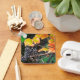 The key chain is made of metal and really sturdy. The flower design is really cheerful. The logo and colors are clear and crisp!