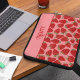 This pretty laptop sleeve is ready to be personalized with a name. This design looks almost good enough to eat with my realistic style illustrations of juicy ripe red strawberries set against a pretty pink background. The fruit graphics are depicted in shades of red and crimson with green leaves. This beautiful rich color palette gives this design a pretty and elegant look. This design coordinates with other designs in Delfuneum’s Strawberry Story collection.