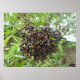 This beautiful poster features a photograph of a cluster of ripening Elderberries. The berries change from red to black when they are ready for picking and are great for turning into Elderberry wine. The photo was taken down a quiet lane in suburban London.