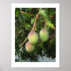 Luscious sweet Hawaiian mangos weigh down a branch as they ripen.