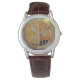 The watch looks really great! Very sharp and well done. The leather band is really nice, though for a man's watch I think it should be longer. Unfortunately, it isn't big enough for my husband's wrist but I will get a replacement because he is very excited to wear it!