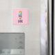 A magnet with a cute typographical design. A fluffy cloud and an orange sun set on a pink background.
