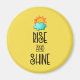A magnet with a cute typographical design. A fluffy blue cloud and an orange and yellow sun set on a yellow background.