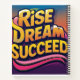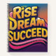The "Rise Dream Succeed" notebook is bold and inspiring, designed to ignite motivation. The cover features a dynamic mix of vibrant colors, with a gradient from deep blue to fiery orange, symbolizing the transition from night to day and the pursuit of success. At the center, the phrase "Rise Dream Succeed" is displayed in strong, modern typography, with each word stacked for emphasis. Subtle rays or beams emanate from behind the text, adding energy and focus to the design. This notebook is perfect for goal setting, brainstorming, and capturing ideas on your path to success.