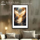 A radiant phoenix rises through smoke and flame, its luminous white-gold wings unfurled against a storm-dark sky. Embers swirl as the mythical bird embodies rebirth, resilience, and transformation — a moment suspended between destruction and renewal. This artwork captures the quiet power of ascension, where light is born from fire and strength emerges from chaos, making it a striking statement piece for modern, symbolic, or contemplative spaces