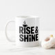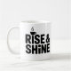 Wake up happy with this Rise & Shine coffee mug! Featuring bold typography and a steaming coffee cup icon, this design is perfect for your morning brew, tea, or hot chocolate. A great gift for coffee lovers, baristas, and anyone who needs a cheerful start to their day.