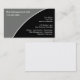 Business risk management service business cards with simple modern design that gives your business a professional look, along with black background color you can change. Designed for a service that does forecasting and evaluation of financial risks together with the identification of procedures to avoid or minimize their impact on your company.