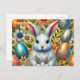 Here is a cute Easter Greeting postcard featuring a cute bunny, Easter eggs, and flowers. It was created using a computer-generated AI program called Bing and my imagination. It is a reasonably priced card for greeting anyone, particularly children, on Easter Day.
