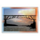 This distinctive postcard features the old rail road bridge, now a walkway, and the ice covered Hudson River with sunset color.