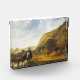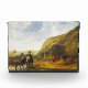 River landscape with riders. Aelbert Cuyp. Classic landscape in warm colors. Two riders stopped to rest by the lake. There are hills in the background. There are clouds in the sky. Reproduction of famous works of art images in the public domain.