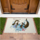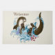 A cute brown river otter playing in the water with flowers in a cream coloured backdrop