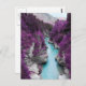 Beautiful landscape photo of a blue river, purple flowers and rocks