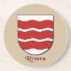 Spanish surname Rivera historical family shield Sandstone Coaster with matching calligraphy style text. Be advised, the image shown will be a bit SUBDUED due to the nature of the print surface.