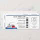 Save the Date invitation cards with a cool red and blue boarding pass design for a riverboat wedding! Easy-to-use template, just enter your info in the space provided, or click the customize button to add additional text.