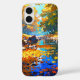 Stunning anime phone case depicting a tranquil riverside forest in autumn with golden leaves and gentle light. Ideal for serene fall designs.