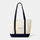 Love the durable cream colored canvas and navy blue contrasted handles. Perfect for carrying my laptop and papers.