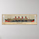 The poster reproduces a c 1920 cutaway view of the great ocean liner RMS Aquitania. The cutaway was originally produced as a marketing device and souvenir for the ship which was launched in 1913 and after surviving two world wars as a troopship and logging millions of miles as a luxury passenger liner was finally scrapped in Scotland in 1950. She was the longest-lived of the great four stacker liners. Originals are quite rare and generally very expensive and this poster offers a very affordable and alternative.