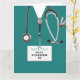 Creative nursing school graduation card featuring hospital scrubs, a stethoscope, and funny Swiss Army knife. To personalize edit text to add nurse's name.