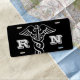 RN registered nurse medical caduceus symbol car license plate gift. Make your own vanity license plate design for your vehicle. Personalize it with your own name monogram, funny words, quote or monogram initials. Bold typography text template. Black and white or custom background color. Cool automotive gift idea for men. Custom motor vehicle plates for nurse, medic, doctor, nursing school graduate, best dad, greatest father, cool grandpa, stepdad, co worker, colleague, husband, boss etc.