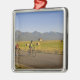 Road bicyclists ride down a back country road metal ornament